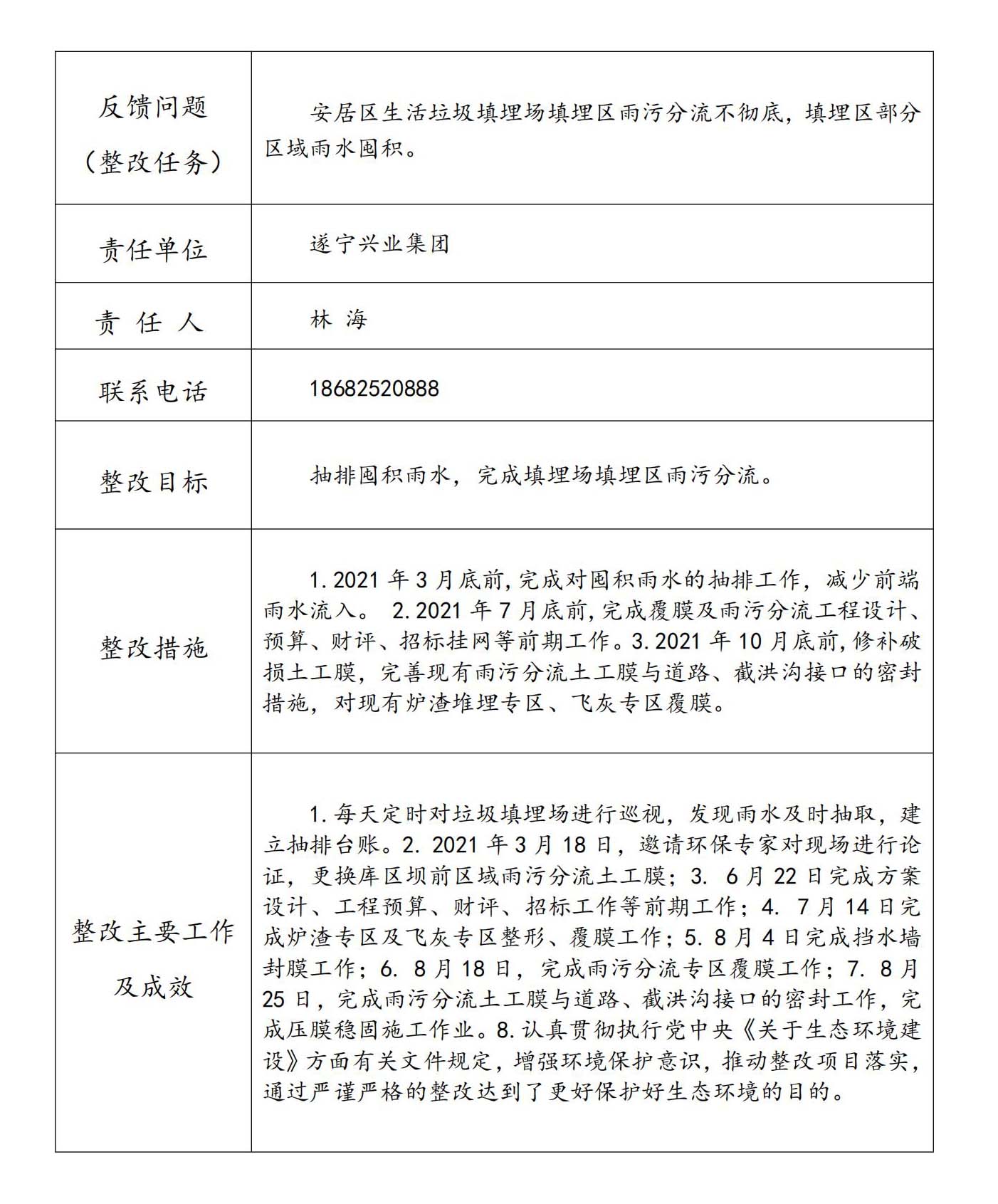 生態(tài)環(huán)境保護(hù)督察反饋意見(jiàn)整改任務(wù)完成情況公示表